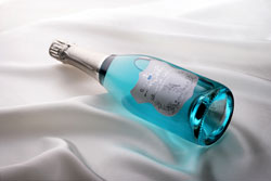 なるほど気品あるエレガントなボトルデザインと天使の肖像。どこか聖母マリアをイメージさせる美しいブルーのお酒ですよね。(ブルーのスパークリングワインです!ボトルが青い訳ではありません。)